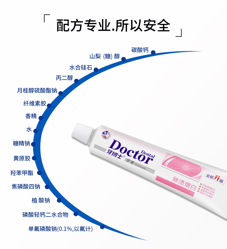 商品名称:牙博士除渍增白牙膏 去除牙渍 洁白牙齿 220g*3支