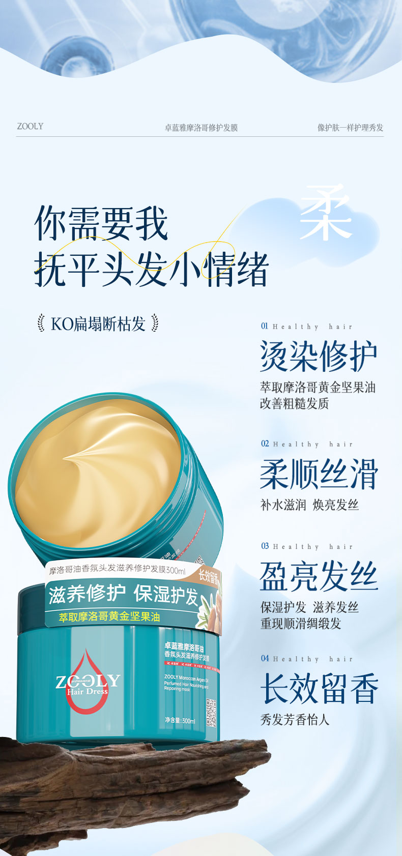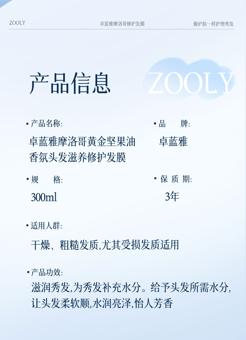 商品名称:卓蓝雅摩洛哥油香氛头发滋养修护发膜300ml