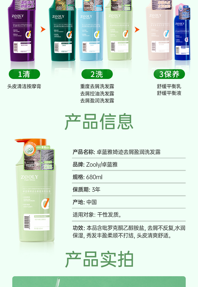 商品名称:S5卓蓝雅婍迹去屑盈润洗发露(头皮头发洗发水)680ml