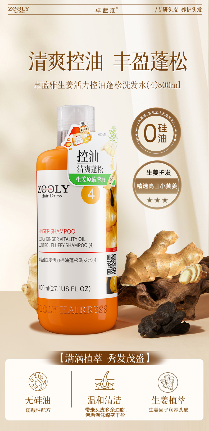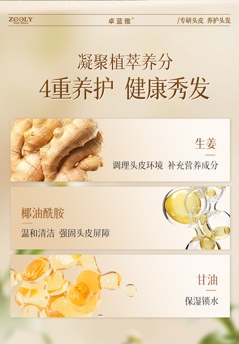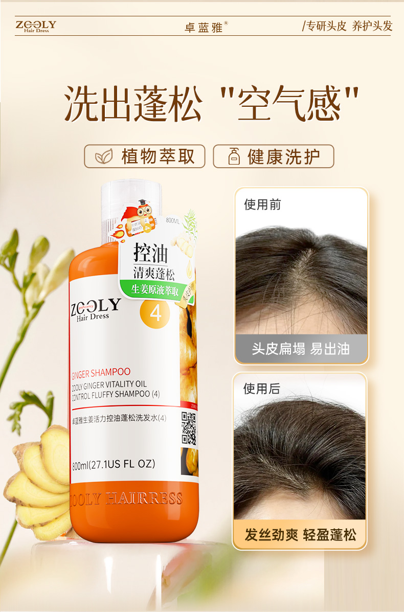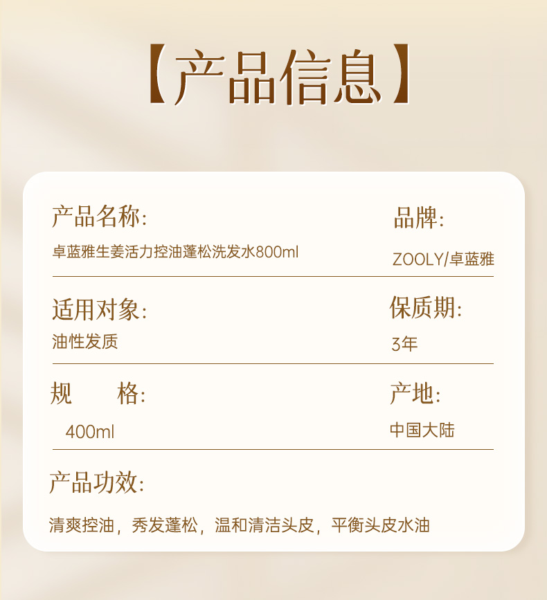商品名称:卓蓝雅生姜活力控油蓬松洗发水(4)800ml