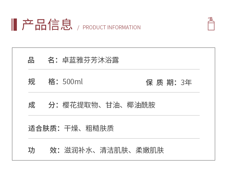 商品名称:卓蓝雅芬香沐浴露500ml