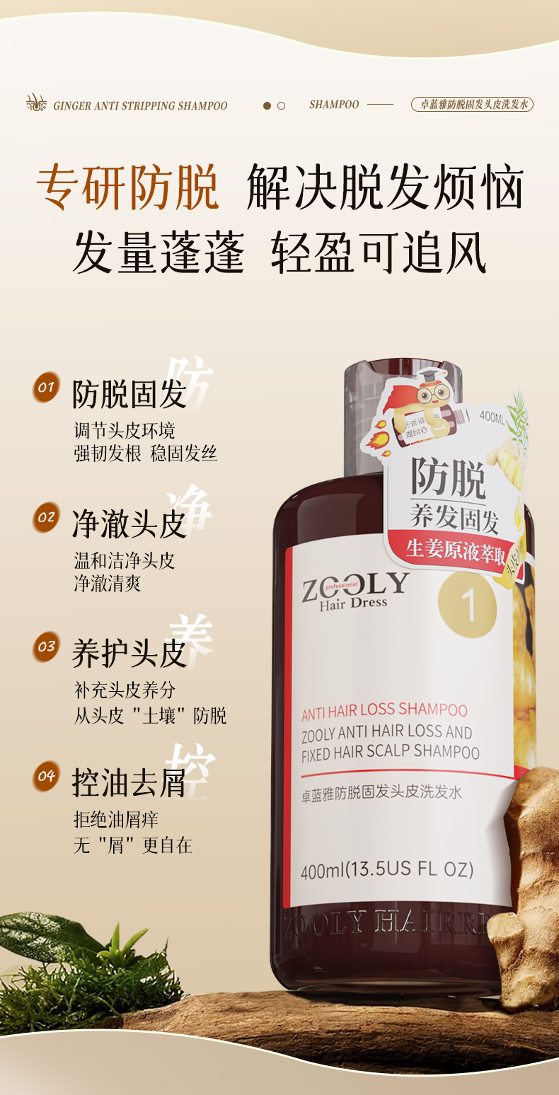 卓蓝雅生姜活力控油蓬松洗发水(4)400ml