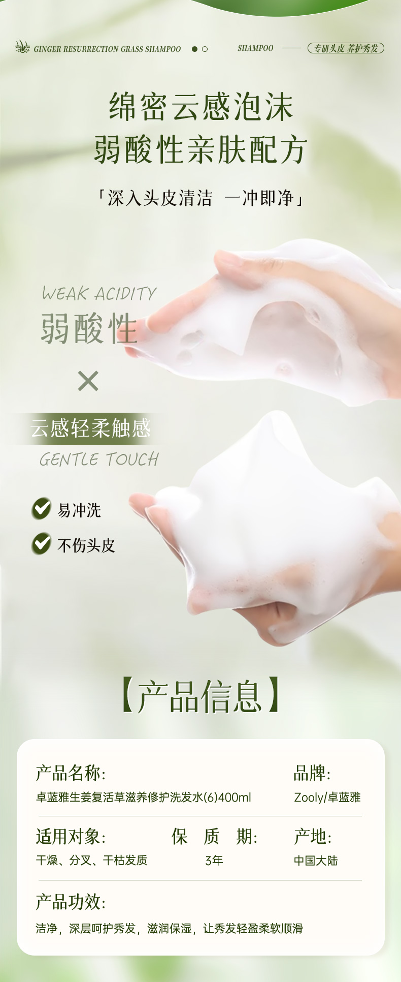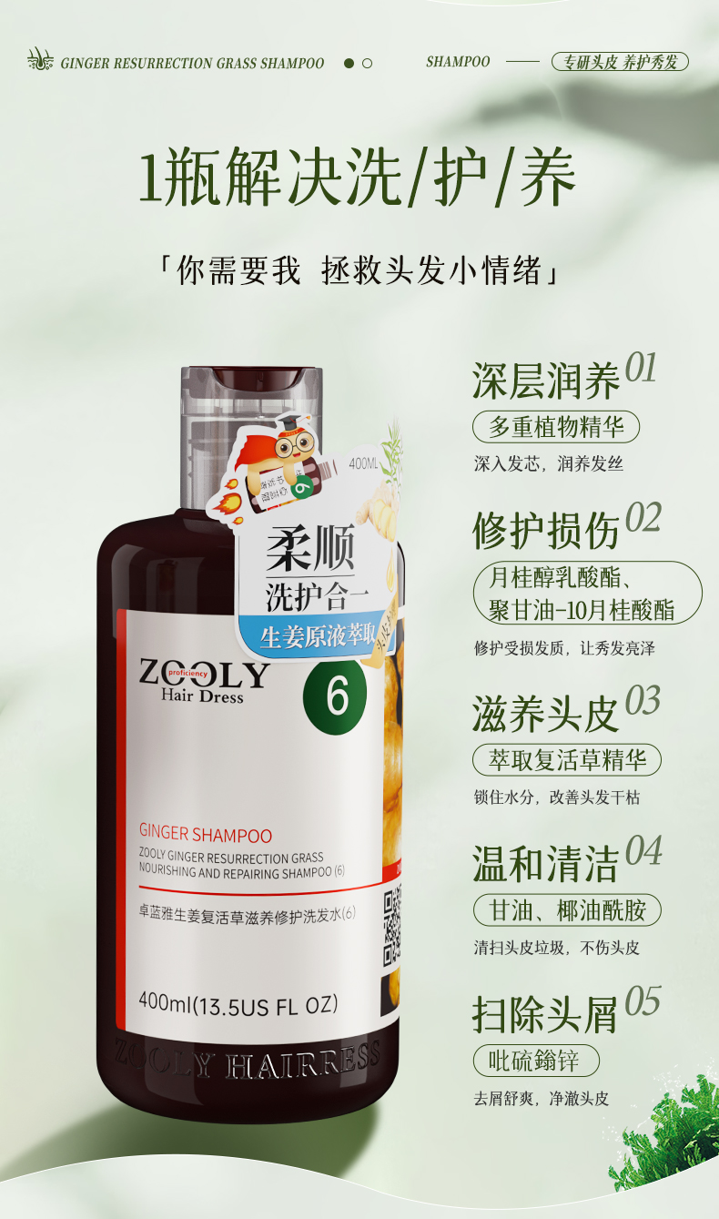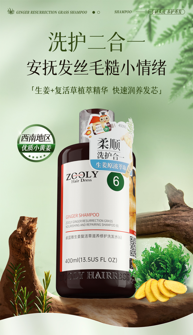 卓蓝雅生姜复活草滋养修护洗发水(6) 400ml