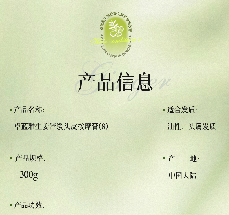 卓蓝雅生姜舒缓头皮按摩磨砂膏(8)300ml